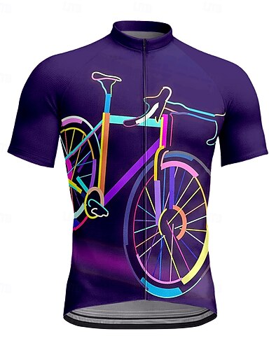 男性用 サイクリングジャージー 幾何学模様 文字&番号 半袖 バイク Tシャツ ジャージー 3つのリアポケット付き マウンテンサイクリング 速乾性 人間工学デザイン ウィッキング 高通気性 スポーツ 濃い紫色 ブルー スカイブルー 衣類