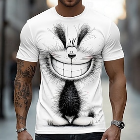 男性用 動物 おかしい Tシャツ 半袖 Tシャツ 3Dプリント クルーネック シャツ 誇張された デザイナー パーティー 祝日 ホワイト 夏 春 衣類 S M L XL XXL XXXL
