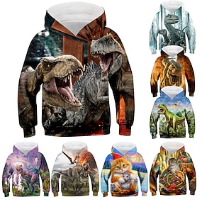 男の子 3D 動物 恐竜 パーカー 長袖 3Dプリント 秋 冬 活発的 スポーツ ファッション ポリエステル 子供 3〜13歳 アウトドア 日常 屋内 レギュラー