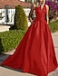Aライン スイープ/ブラシトレーン 卒業ドレス イブニングドレス ボールガウン フォーマルドレス エレガント ノースリーブ Vネック フォーマル 秋 サテン とともに プリーツ 2025