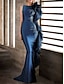 タイト/コラム フロア丈 イブニングドレス オーバースカート付きボールガウン フォーマルドレス エレガント 豪華 ノースリーブ ワンショルダー 結婚式のゲスト カクテルパーティー サテン とともに オーバースカート ピュアカラー 2025