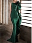 タイト/コラム フロア丈 イブニングドレス オーバースカート付きボールガウン フォーマルドレス エレガント パーティー ハーフスリーブ オフショルダー フォーマル 結婚式のゲスト オーバースカート サテン とともに フリル 2025