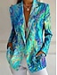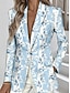 女性用 ブレザー 保温 快適 ポケット ボタン プリント ヴィンテージ 日常 カジュアル フラワー フォーマル オフィス カジュアル シングルブレスト レギュラー ノッチドラペル レギュラー 長袖 アウターウェア ブルー 春 秋