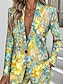 女性用 ブレザー 保温 ポケット ボタン 日常 カジュアル フラワー フォーマル カジュアル レギュラー ノッチドラペル レギュラー 長袖 アウターウェア イエロー ブルー グリーン 春 秋