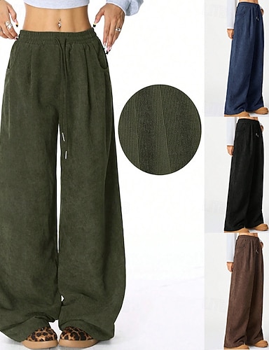 女性用 ワイドレッグ コーデュロイパンツ スラックス ストリートファッション カジュアル 全長 ナチュラルウエスト 平織り ドローストリング 快適 ストリート 祝日 デイリーウェア ネービー ブラック グリーン コーヒー 秋 レギュラー