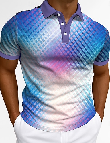 男性用 幾何学模様 抽象的 ポロ 半袖 ポロシャツ 襟付きシャツ カジュアル アスレイジャー デイリーウェア 3Dプリント ボタン 夏 ルビーレッド ブルー パープル