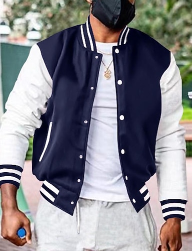男性用 軽量ジャケット サマージャケット トランジションジャケット カジュアルジャケット バケーション 日常 耐摩耗性 ポケット 春 & 秋 カラーブロック ファッション クラシック スタンド レギュラー ブラック ワイン ネイビーブルー ブルー ジャケット