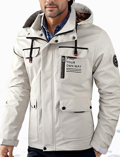 男性用 アウトドアジャケット フリースの上着 レインコート パーカージャケット 日常 バケーション 防水 防風 ポケット 秋冬 レタード ファッション クラシック フード付き レギュラー ブラック ホワイト ジャケット