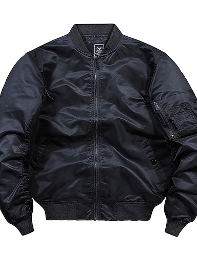 男性用 ボンバージャケット カジュアルジャケット 日常 バケーション 高通気性 ポケット 春 & 秋 平織り ファッション クラシック ラペル レギュラー ブラック カーキ色 アーミーグリーン ジャケット