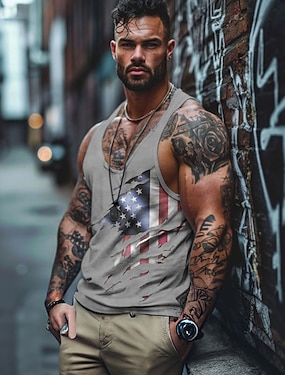 退役軍人の日 メンズ パトリオット 愛国者 ベテラン グラフィック アメリカ国旗 ベスト トップ レーサーバック タンクトップ 男性用ノースリーブ Tシャツ ノースリーブ Tシャツ 3Dプリント Vネック シャツ スポーツ デイリー シンプル スポーツ アウトドア