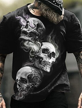 男性用 グラフィック スカル Tシャツ 半袖 Tシャツ 3Dプリント クルーネック シャツ ヴィンテージ ファッション デザイナー アウトドア カジュアル 日常 ブラック ブルー アーミーグリーン 春夏 衣類 S M L XL 2XL 3XL