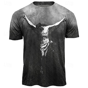 イースター 男性用 グラフィック イエス Tシャツ 半袖 Tシャツ 3Dプリント クルーネック シャツ 日常 デザイナー レトリ/ヴィンテージ スポーツ・アウトドア 祝日 お出かけ ブラック ブルー ブラウン 春夏 衣類 S M L XL 2XL 3XL