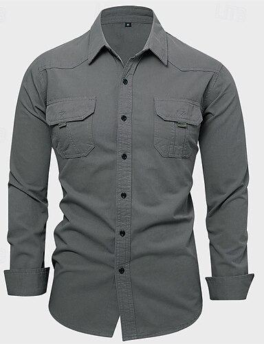 男性用 シャツ サマーシャツ カジュアルシャツ ボタンアップシャツ ブラック カーキ色 アーミーグリーン グレー 長袖 平織り ラペル バケーション 祝日 ポケット 衣類 ポリエステル ファッション カジュアル 快適