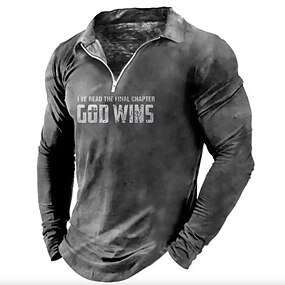 メンズロングスリーブクォータージップポロシャツ「私は最終章を読んだ、神は勝つ」信仰グラフィック