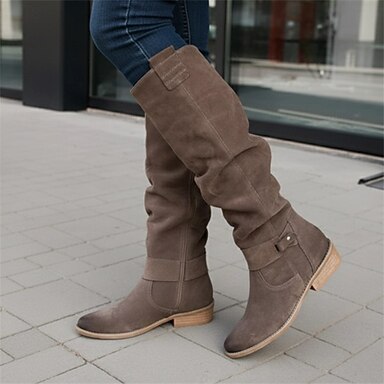 バックル付きのレディース用スラウチスエードニーハイブーツ - 普段使いや秋のファッションにぴったりのカジュアルなフラットヒール