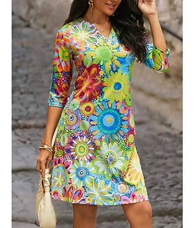 ウィメンズミニドレスプチドレスTシャツドレスティードレスシフトドレスサマードレスアクティブファッションストリートウェアアウトドアバケーションワークレギュラーフィットフローラルハーフスリーブスプリットネックイエローピンクグリーン