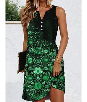 女性用 ミニドレス カジュアルドレス タンクトップワンピース ヴィンテージ カジュアル バケーション 日常 レギュラー ビンテージ ノースリーブ ノッチネック ブルー スカイブルー ブラウン グリーン 夏