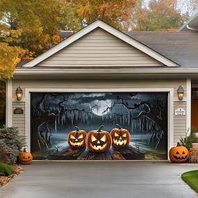 Halloween タペストリー ガレージドアカバー 大きな吊り下げ 森林 カボチャ ダークパンクゴシック パーティー 屋外 撮影背景 玄関 装飾壁ドア背景