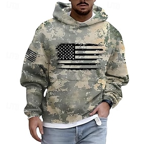 男性用 パーカー グリーン カーキ色 ライトグリーン グレー フード付き カモフラージュ アメリカの国旗 フロントポケット 日常 祝日 お出かけ ポリエステル ストリートファッション カジュアル 秋 冬 衣類 パーカー トレーナー