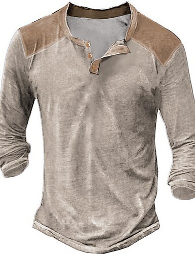 男性用 ボタンTシャツ Tシャツ ヘンリーシャツ 長袖シャツ 長袖 Vネック 春 & 秋 カラーブロック デザイナー ベーシック カジュアル ボタンダウン ストリート スポーツ 祝日 ブラック ネイビーブルー カーキ色 メンズトップTシャツ