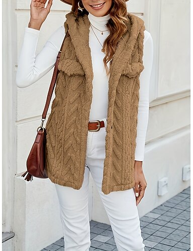 女性用 シェルパジャケット 快適 高通気性 パッチワーク カジュアル カラーブロック バケーション ストリート カジュアル デイリーウェア オープンフロント ショート ノッチドラペル レギュラー ノースリーブ アウターウェア ブラック カーキ色 春 秋