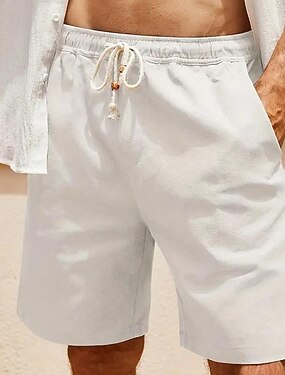 男性用 ショーツ リネンショーツ サマーショーツ ビーチショーツ ドローストリング 弾性ウエスト 平織り 履き心地よい 高通気性 膝丈 アウトドア 日常 ビーチ 旅行度假风 クラシック ブラック ホワイト