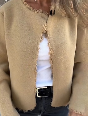 女性用 冬物コート 快適 ボタン ファッション 平織り 祝日 お出かけ シングルブレスト レギュラー クルーネック レギュラー 長袖 アウターウェア ホワイト カーキ色 コーヒー 秋 冬