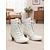 女性用1930年代ヴィンテージレースアップホワイトアンクルブーツ、花柄レースインサート付き。フォーマルなイベント、結婚式、パーティーに最適なエレガントなレトロスタイルのヒール。