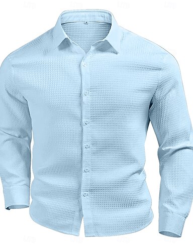 男性用 シャツ ワッフルシャツ サマーシャツ カジュアルシャツ ボタンアップシャツ ブラック ホワイト カーキ色 ライトブルー 長袖 平織り ラペル バケーション カジュアル 衣類 ファッション カジュアル 快適