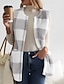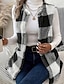 女性用 冬物コート コート 保温 快適 ポケット オープンフロント カジュアル チェック バケーション お出かけ 週末 ロング 折襟 レギュラー 長袖 アウターウェア ブラック ブラウン カーキ色 秋 冬