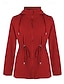 女性用 トレンチコート 快適 高通気性 ボタン カジュアル 純色 バケーション ストリート カジュアル デイリーウェア シングルブレスト ロング フード付き レギュラー 長袖 アウターウェア ライトブルー ルビーレッド カーキ色 春 秋