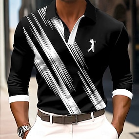 男性用 幾何学的な ライン ポロ 長袖 ポロシャツ 襟付きシャツ ビジネスカジュアル ビジネス アスレイジャー デイリーウェア 3Dプリント ボタン 春 秋 冬 ブラック ホワイト ブルー