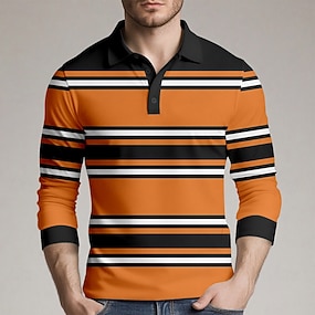 男性用 水平ストリップ ラグビーポロ 長袖 ポロシャツ 襟付きシャツ スポーツウェア カジュアル 学校 アウトドア アスレイジャー 3Dプリント 春 秋 冬 オレンジ
