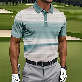 男性用 ゴルフ グラデーションストライプ ワッフルポロシャツ ゴルフシャツ 半袖 ポロシャツ 襟付きシャツ スポーツウェア カジュアル アウトドア アスレイジャー デイリーウェア 3Dプリント ボタン 夏 ブルー パープル グリーン