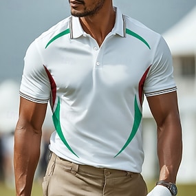 男性用 スポーツポロシャツ カジュアル スポーツ ラペル 半袖 垂直ストリップ ボタン 夏 レギュラー ホワイト スポーツポロシャツ