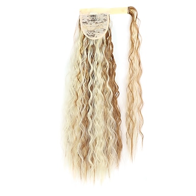 コーンウェーブロングポニーテール人工毛髪エクステンションオンブルブラウンポニーテールブロンドフェイクヘア
