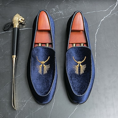 ゴールドの刺繍が施されたメンズグリーンベルベットローファー - フォーマルなイベントや結婚式に最適な豪華なスリッポンシューズ