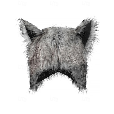 メンズハロウィンオオカミ耳帽子 - コスプレ、パーティー、冬服に使えるふわふわポリエステル製コスチュームキャップ