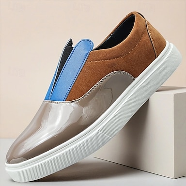 伸縮性のあるデザインのメンズブラウン&タンスリッポンスニーカー - カジュアルな外出、旅行、普段使いに最適な軽量で柔軟な履物