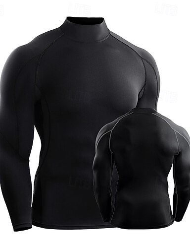 男性用 コンプレッション・シャツ ワークアウトベースレイヤー ワークアウトトップス 長袖 トップス アスレイジャー 秋 ソリッド 速乾性 ジム バスケットボール アスレチック スポーツウェア アクティブウェア グリーン-ブラック ブラック ホワイト