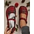 調節可能なストラップ付きの女性用レッドチェック柄メリージェーンフラットシューズ、クリスマスやカジュアルな服装にぴったりのレトロな履き心地のシューズ &普段着
