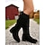 ヒョウ柄ディテールのレディースブラックチェルシーブーツ - 秋冬カジュアルウェアに最適なファッションアンクルブーツ