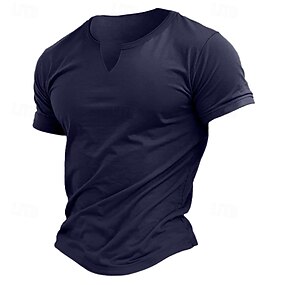 男性用 Tシャツ 半袖 Vネック 夏 平織り ファッション クラシック 快適 Vネック カジュアル スポーツ 祝日 ライトブルー ダークブラウン ブラック メンズトップTシャツ
