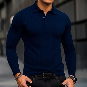 男性用 ポロシャツ リブニットトップス ビジネス カジュアル リブ付きポロカラー 長袖 ファッション ベーシック 純色 編み 秋 冬 オールシーズン スリムフィット ホワイト ネイビーブルー ポロシャツ