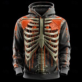 Halloween 男性用 3D スケルトン パーカー スウェットシャツ パンク 誇張された クルーネック クラブ ストリートウェア ルビーレッド ブルー ドローストリング 秋 冬 デザイナー