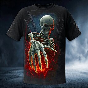 Halloween 男性用 スカル 3D印刷 3D スケルトン Tシャツ 半袖 Tシャツ 3Dプリント クルーネック シャツ 誇張された デザイナー ホラー パーティー ストリート 祝日 イエロー ルビーレッド ブルー 夏 春 オールシーズン 衣類 S M L XL XXL XXXL