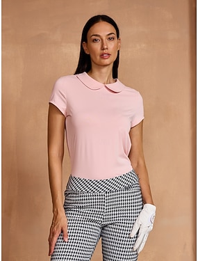 女性用 ポロシャツ ローズピンク ブラック ホワイト 半袖 シャツ レディース ゴルフウェア ウェア アウトフィット ウェア アパレル