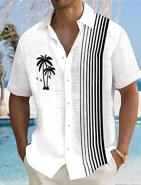 男性用 ココナッツの木 ヤシの木 熱帯植物 アロハシャツ プリントシャツ 半袖 シャツ 折襟 ハワイアン リゾート アウトドア バケーション パーティー ホワイト S M L