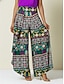 サテンの幾何学模様の花柄ワイドレッグパンツ、カジュアルバケーション