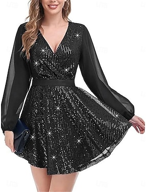 女性用 ミニドレス 黒いドレス スパンコールドレス カジュアルドレス ブレザードレス カジュアル パーティー ストリート レギュラー 平織り 長袖 Vネック ブラック 秋 冬